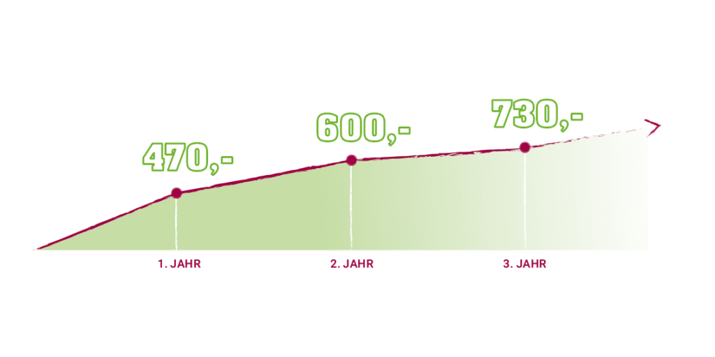 Das Ausbildungsgehalt als Bäcker bzw. Bäckerin ist tariflich festgelegt: Im ersten Jahr verdienst du als Anfänger noch 470 Euro brutto im Monat, im zweiten und dritten Lehrjahr steigt dein Gehalt jeweils sukzessive an. Den genauen Verlauf deines Verdienstes während der Ausbildung findest du in unserer Gehaltsgrafik.